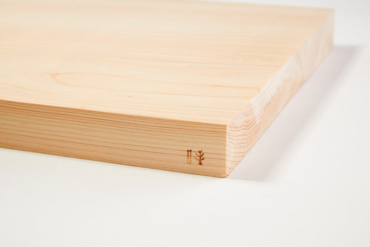 The hinoki wood harvested in Yamanashi Prefecture is sawn into a single solid cutting board with no joints or glued joints. Each piece is handmade. No glue, paint, or oil is used.